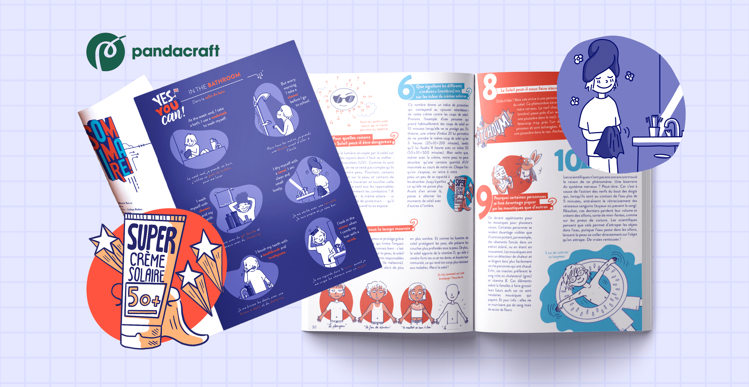 Youpi, un cahier de vacances ! En lien avec l’équipe éditorial du magazine Pandacraft, création d’illustrations et d’activités sur le thème de l’été.